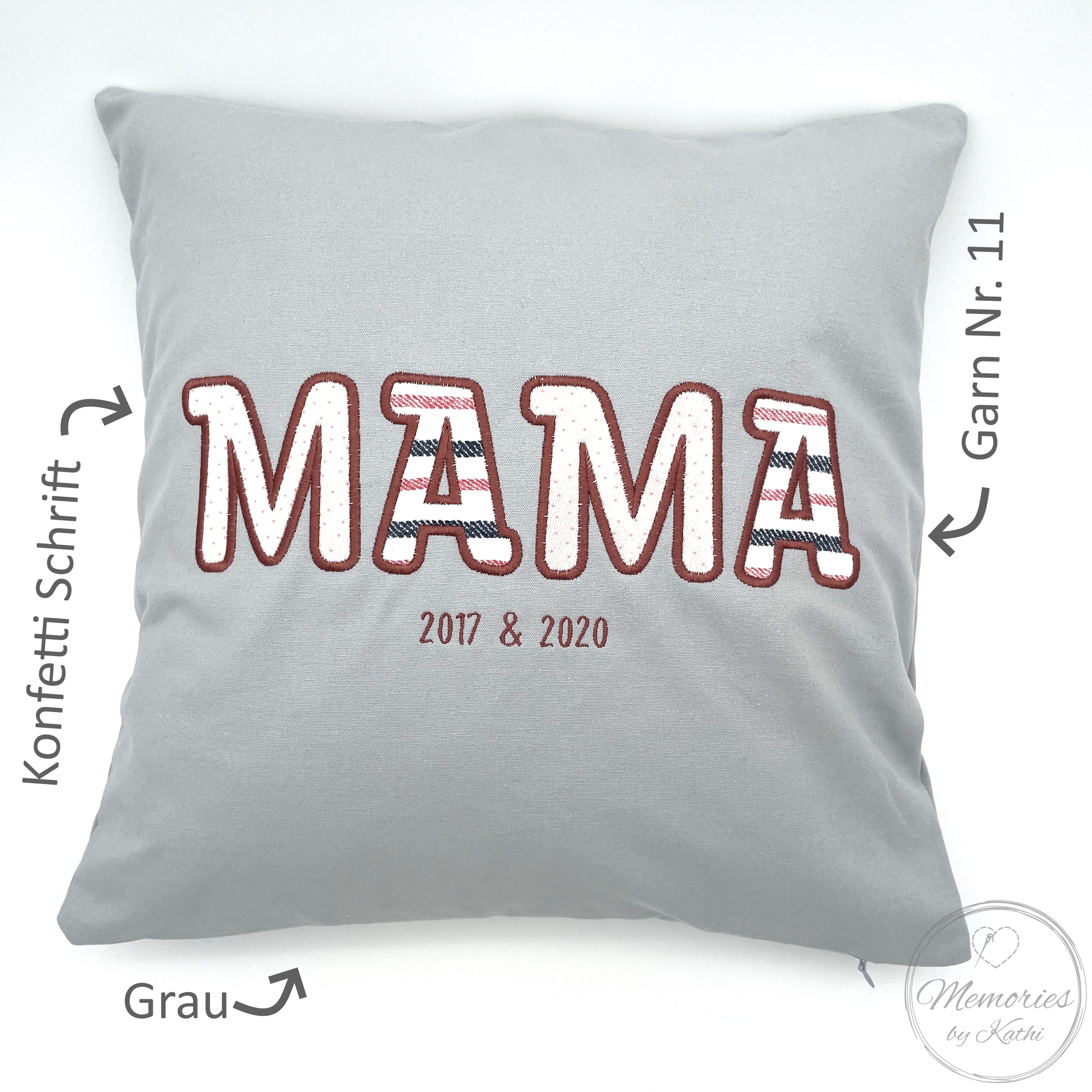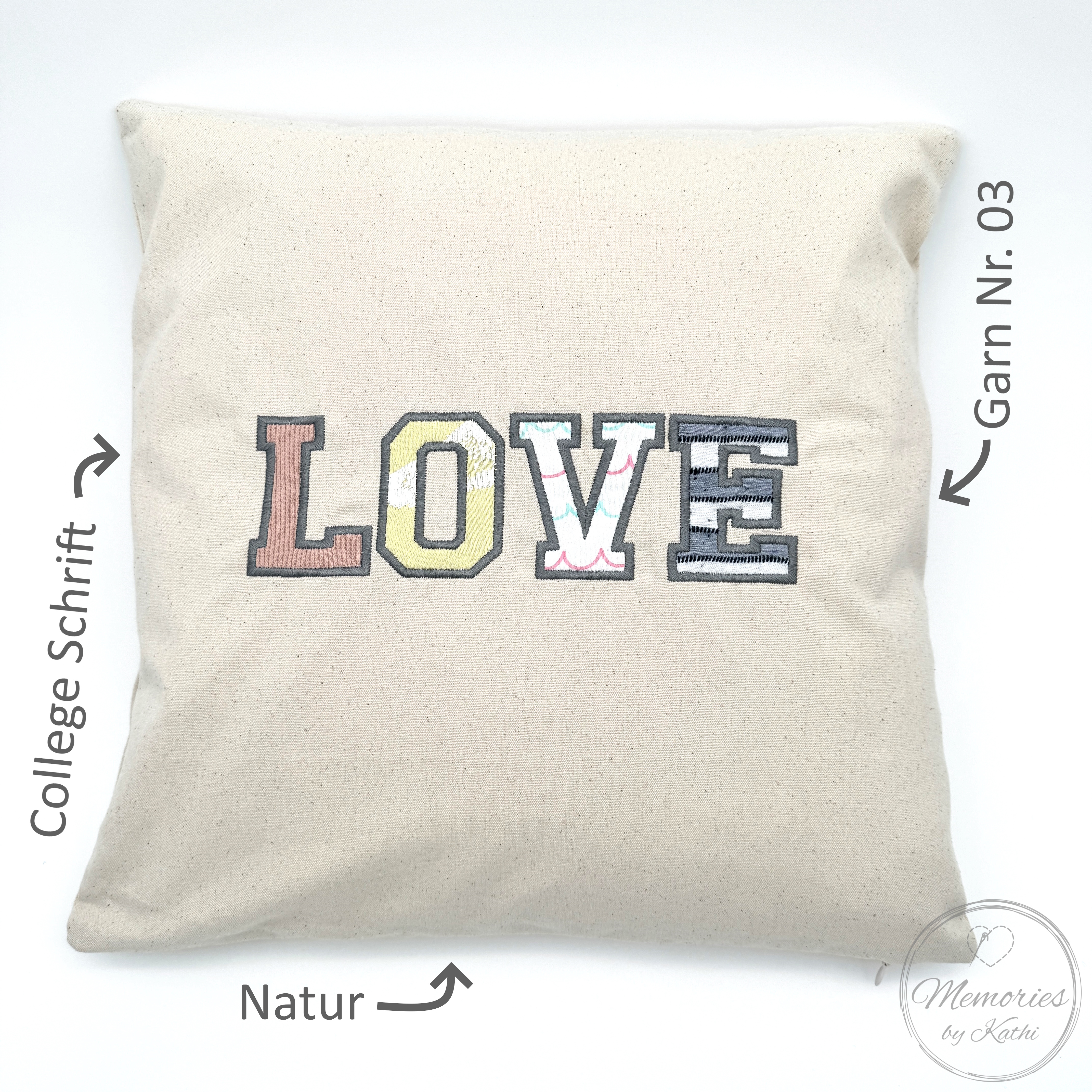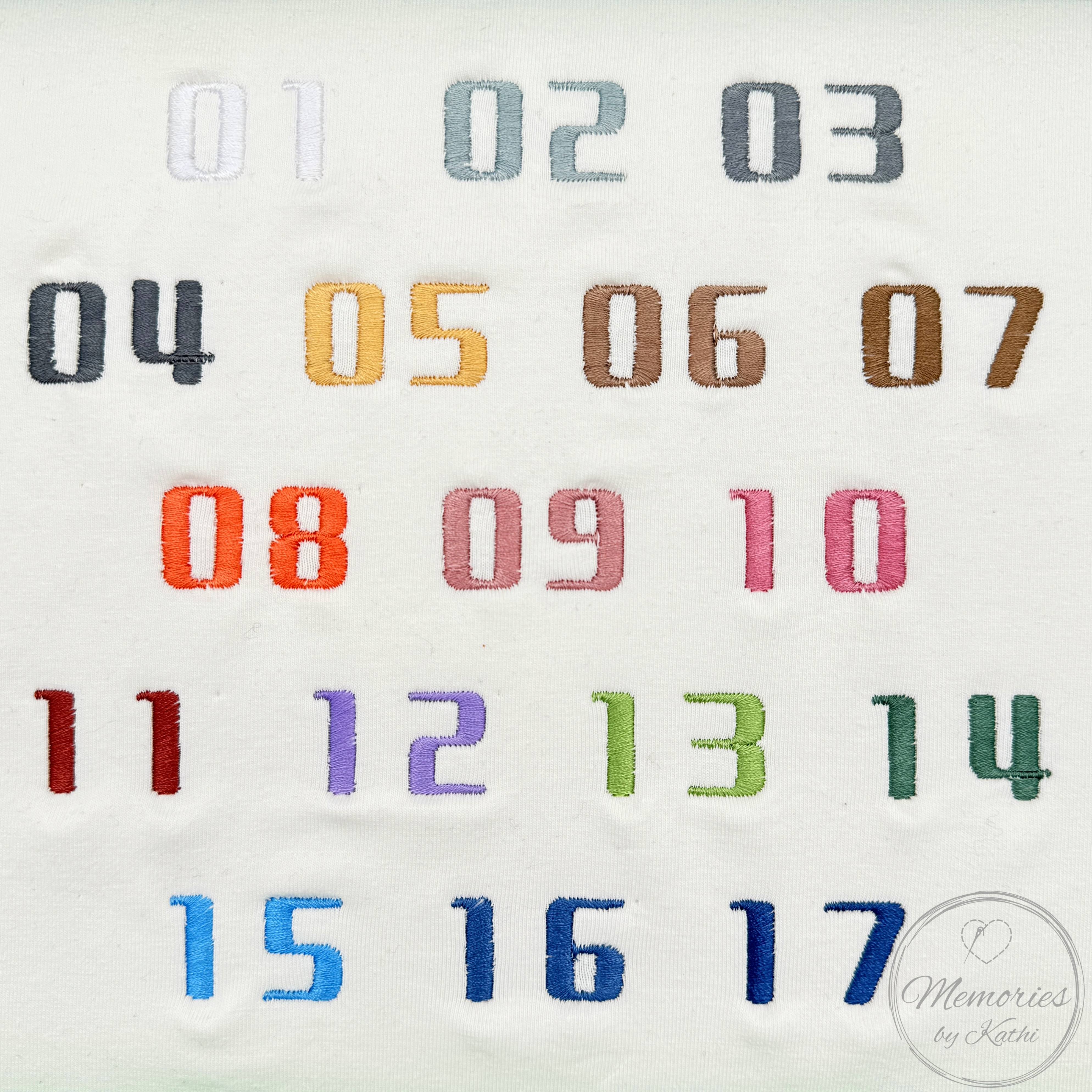 Du kannst außerdem die Garnfarbe für deine Applikation und den Zusatztext ganz nach deinem Geschmack auswählen. Schau dir dafür einfach die Garnfarbenübersicht an und finde den perfekten Farbton, der zu deinen Stoffstücken passt.