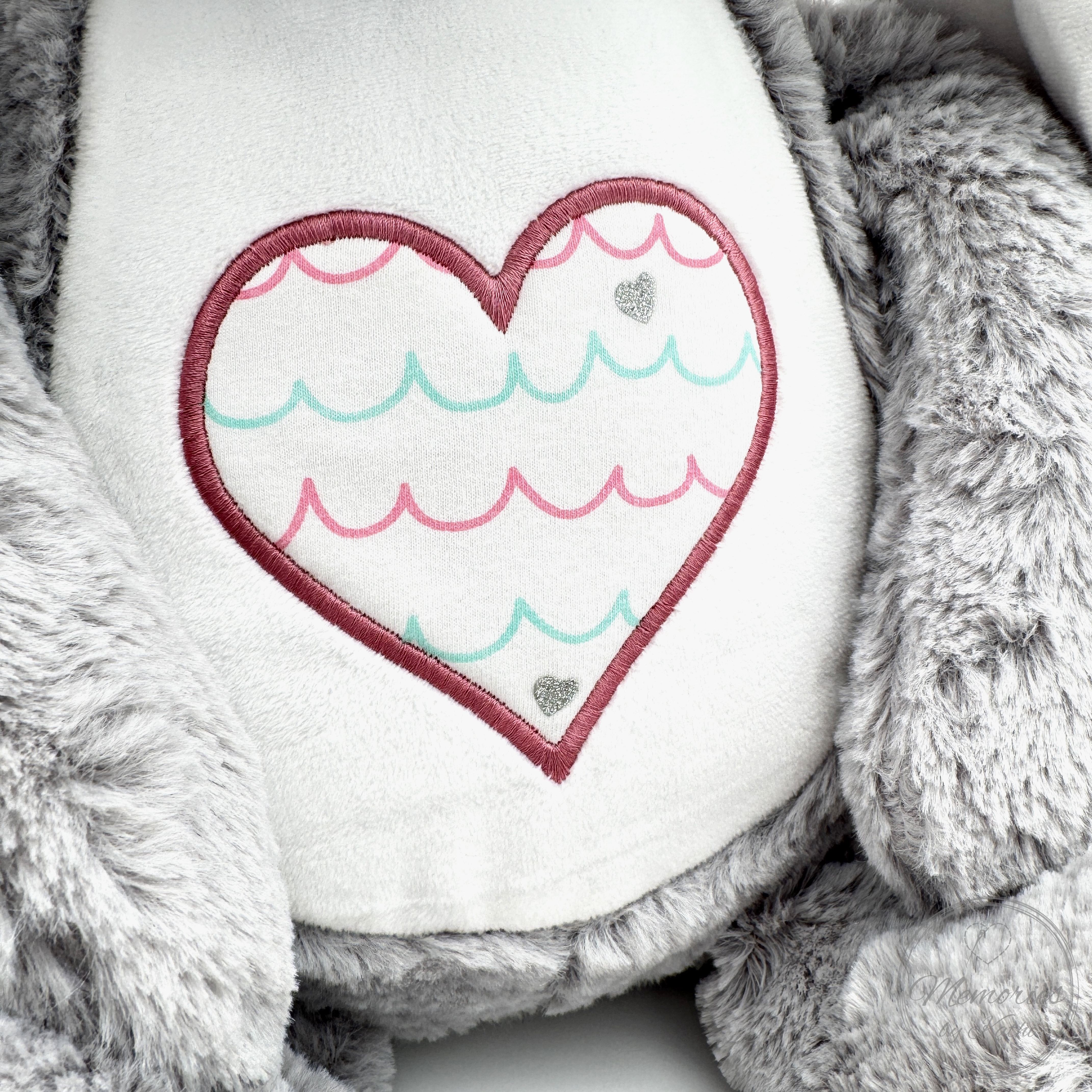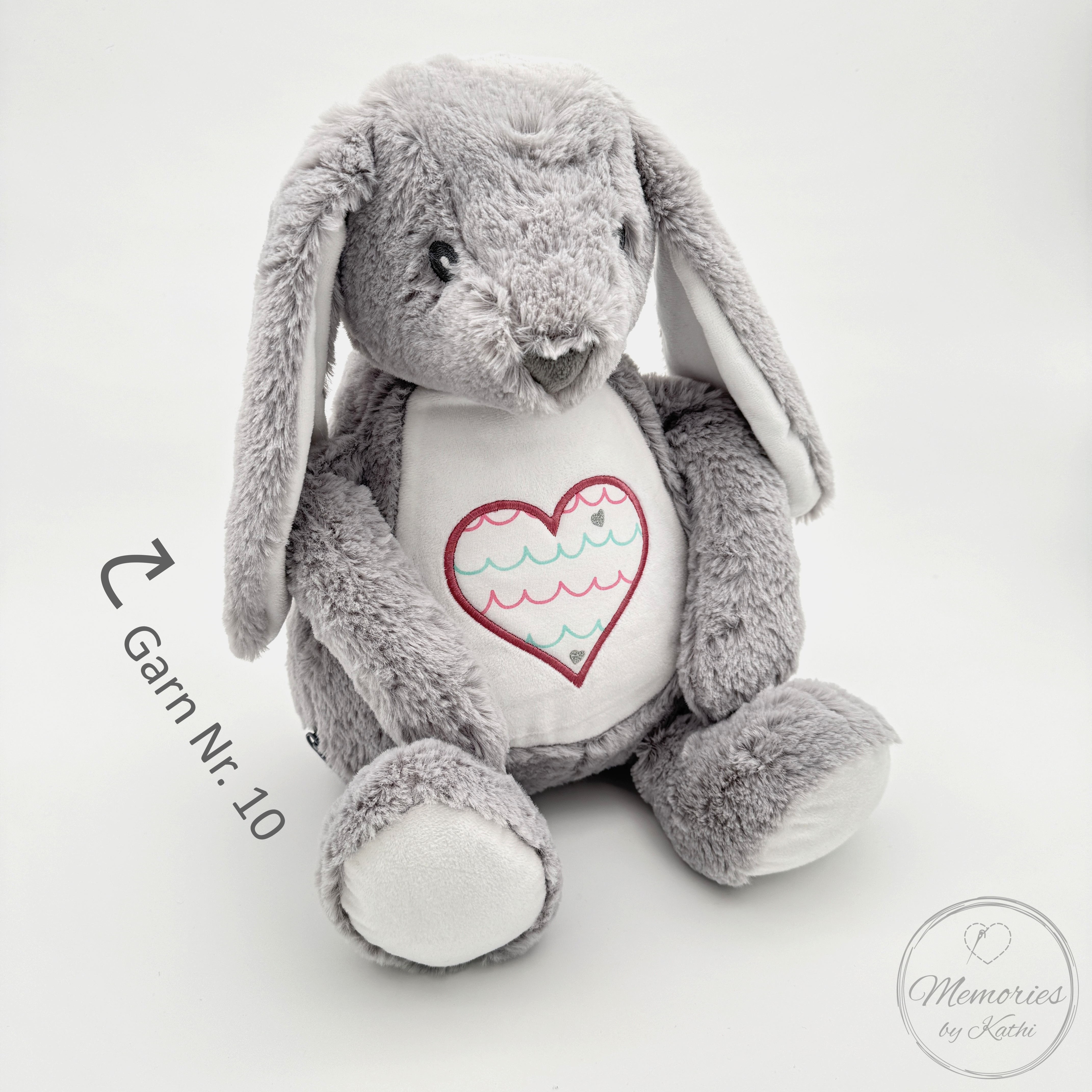 Dieser superweiche Hase in der Farbe grau ist mehr als nur ein Begleiter – es ist ein Erinnerungsstück voller Wärme und Liebe. Mit einer Applikation aus einem Stoffstück, das dir am Herzen liegt, wird es zu einem einzigartigen Schatz, der die erste Babyzeit für immer bewahrt.