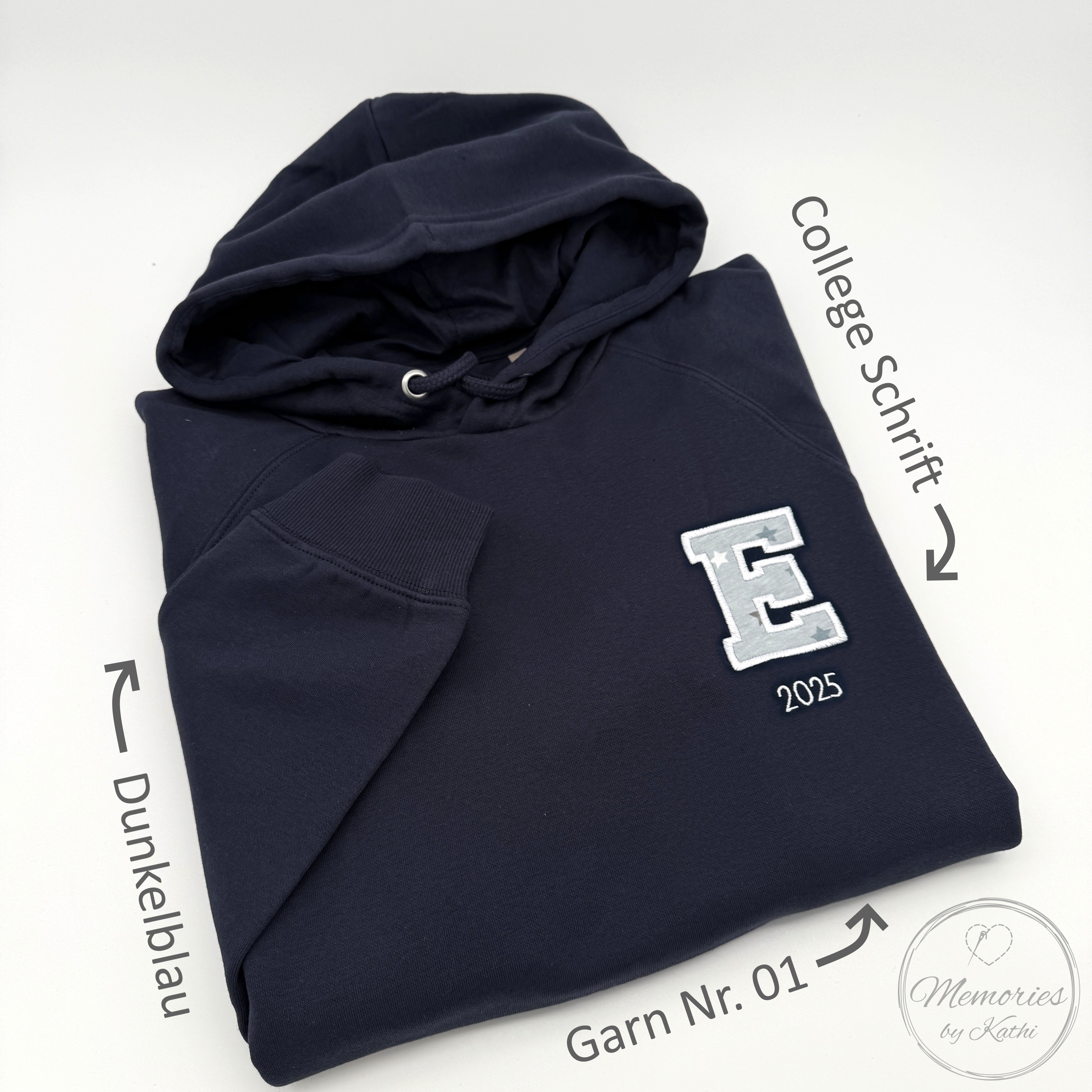Du kannst deinen Hoodie in dunkelblau, schwarz, grau melange oder beige bestellen.