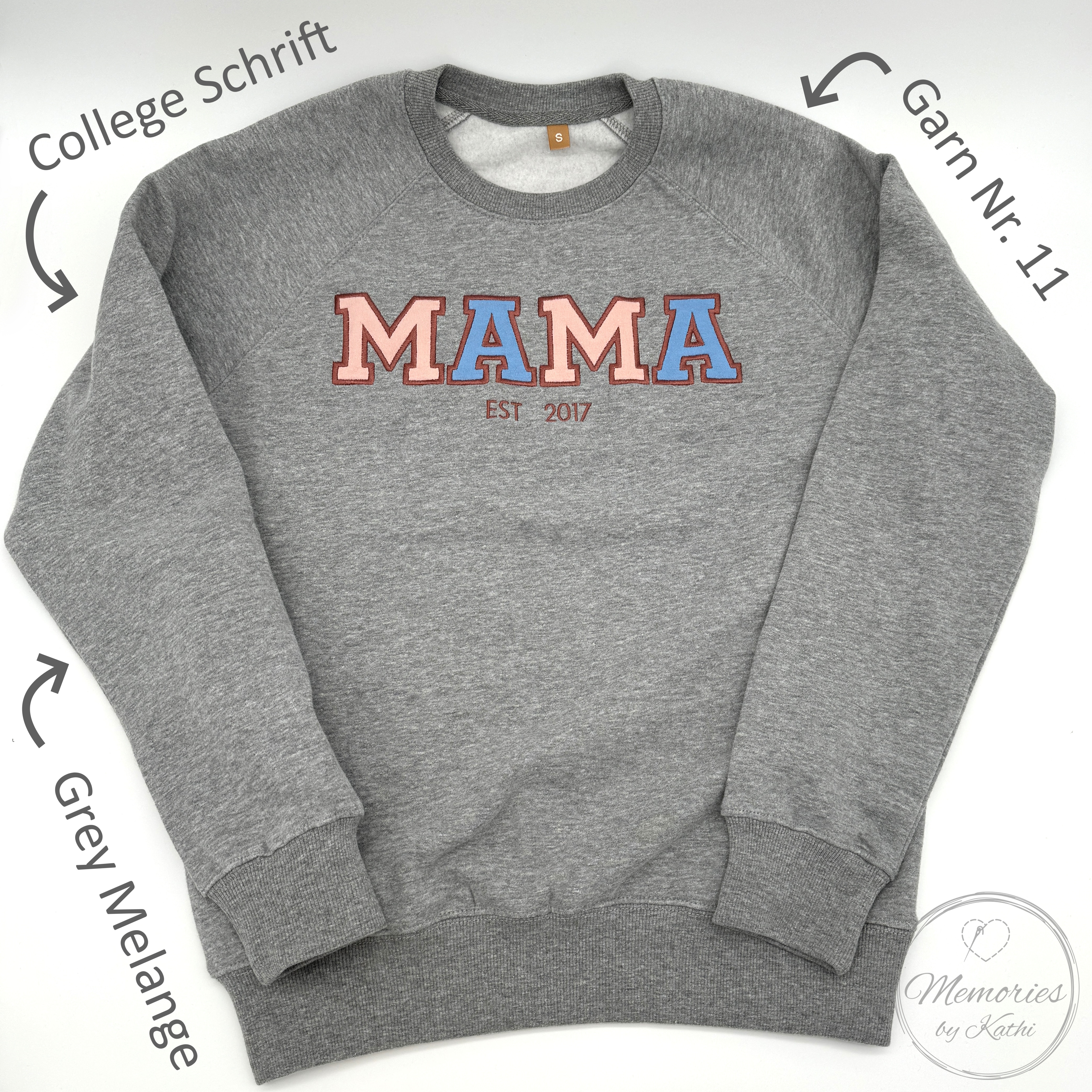 Mit der Wahl der Applikationsschriftart kannst du deinem Sweatshirt zusätzlich eine ganz individuelle Note verleihen: Entscheide dich für den klassischen Schriftzug "College" oder für die verspielte Variante "Konfetti". Du hast auch die Möglichkeit unter der Applikation noch einen Zusatztext wie deinen Namen, ein besonderes Datum oder ein Wort, das dir viel bedeutet, sticken zu lassen. Notiere deinen Wunschtext einfach bei der Bestellung unter "Zusatztext".