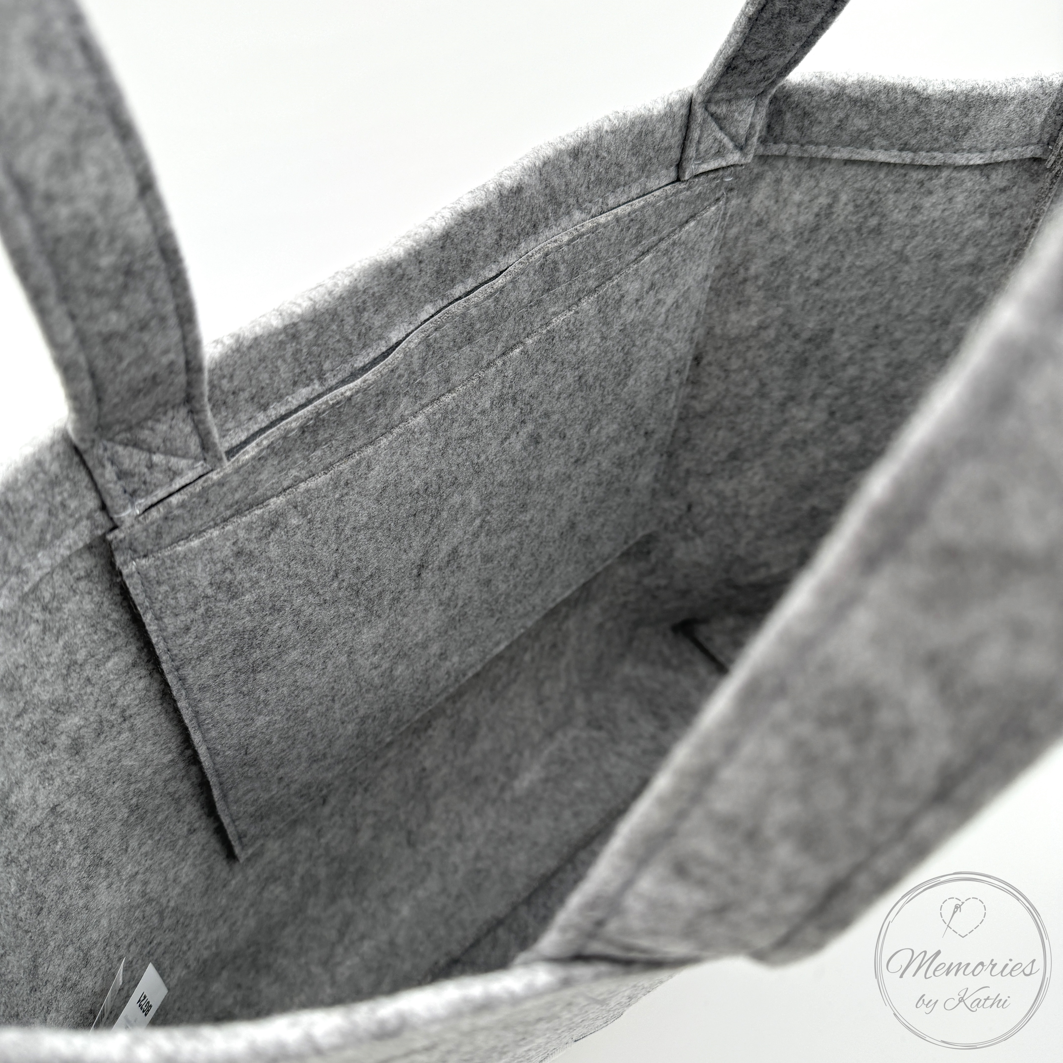 Der Filzshopper ist nicht nur funktional, sondern auch ein echtes Statement. Du kannst ihn ganz nach deinem Geschmack personalisieren: Füge zu deiner Applikation gerne noch Namen oder ein besonderes Datum oder einen liebevollen Zusatztext hinzu, um deinem Shopper eine ganz persönliche Note zu verleihen.